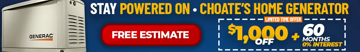 To protected your home from future power outages, call Choate's Air Conditioning, Heating, Plumbing and Electrical for a free estimate on Whole Home Generators, (901) 755-4797
